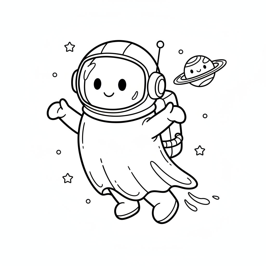 Eine originale KI-generierte Fan-Art-Malvorlage, inspiriert von unter uns, mit einem geisterbohnenförmigen Astronauten, der transparent und ätherisch schwebt. Dies ist inoffiziell Fan-Kunst, nicht mit den ursprünglichen Schöpfer verbunden. Perfekt für Kinder und Erwachsene, die Färbung lieben!