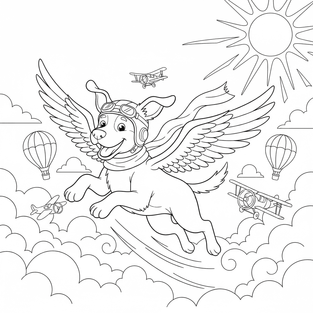 ein Hund fliegt in den blauen Himmel
