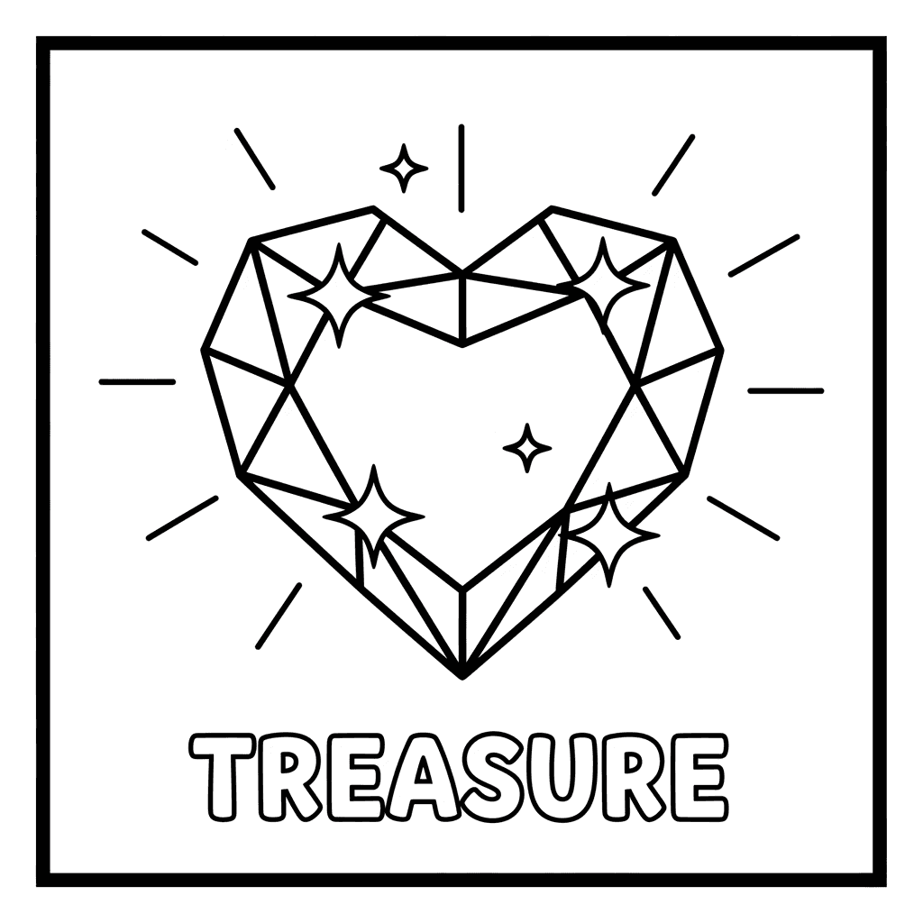 Ein entzückendes Herz Färbung Seite mit Herz Edelstein Juwel funkelnde kostbare. Perfekt für Kinder und Erwachsene, die Färbung lieben!