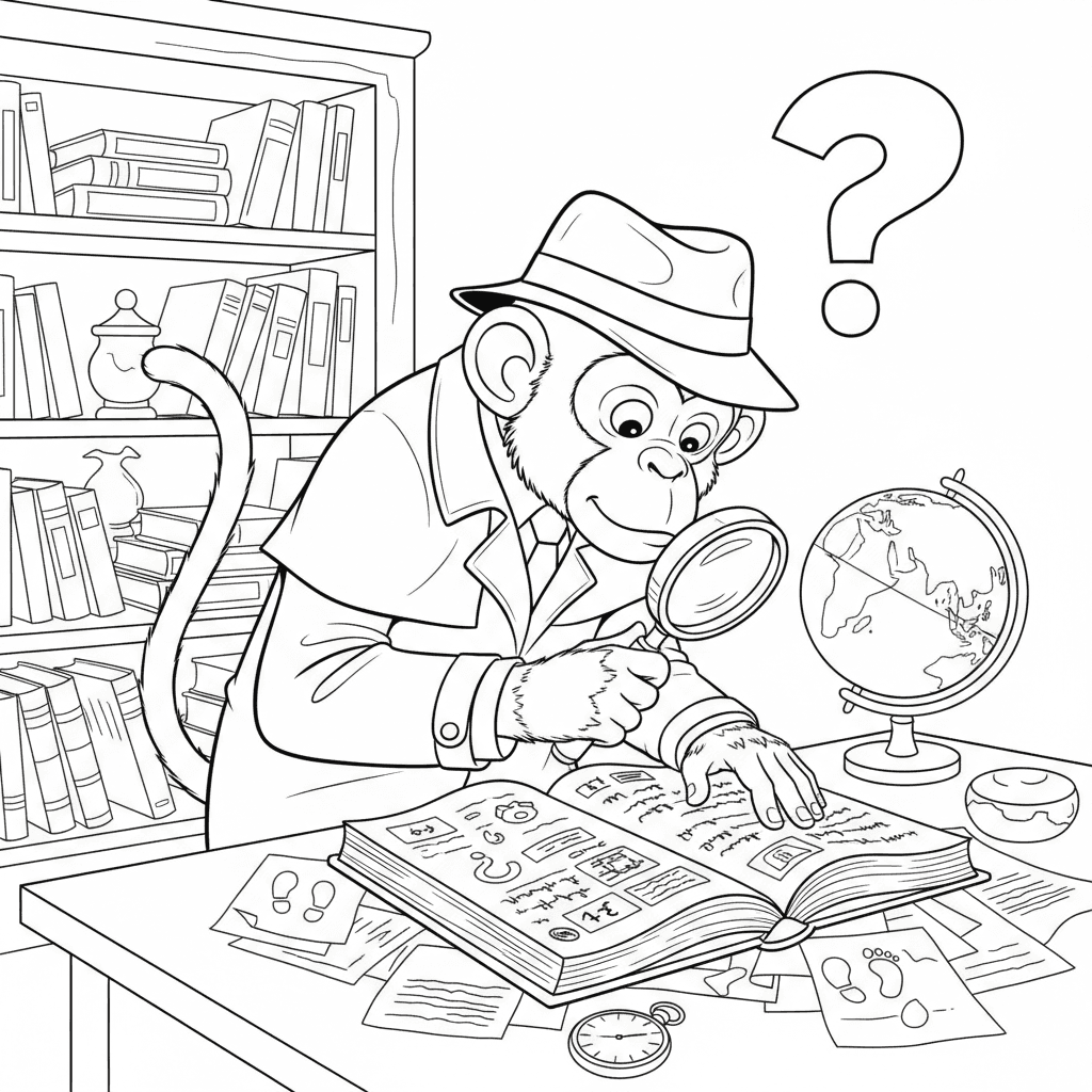 Schöne Affe Detektiv Lösung Fall Malvorlage für Kinder und Erwachsene. Kostenlos zum Herunterladen und Drucken.
