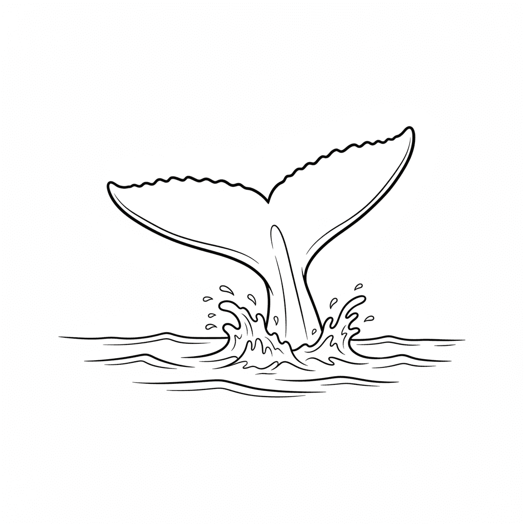 Schöne Walschwanz über Wasser Färbung Seite für Kinder und Erwachsene. Kostenlos zum Herunterladen und Drucken.