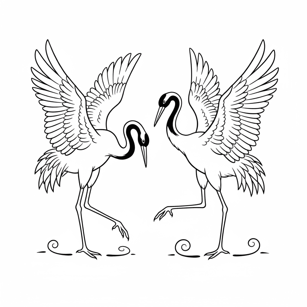 Una encantadora página para colorear de una grulla bailando en elegante movimiento de cortejo. Perfecto para niños y adultos a los que les encanta colorear