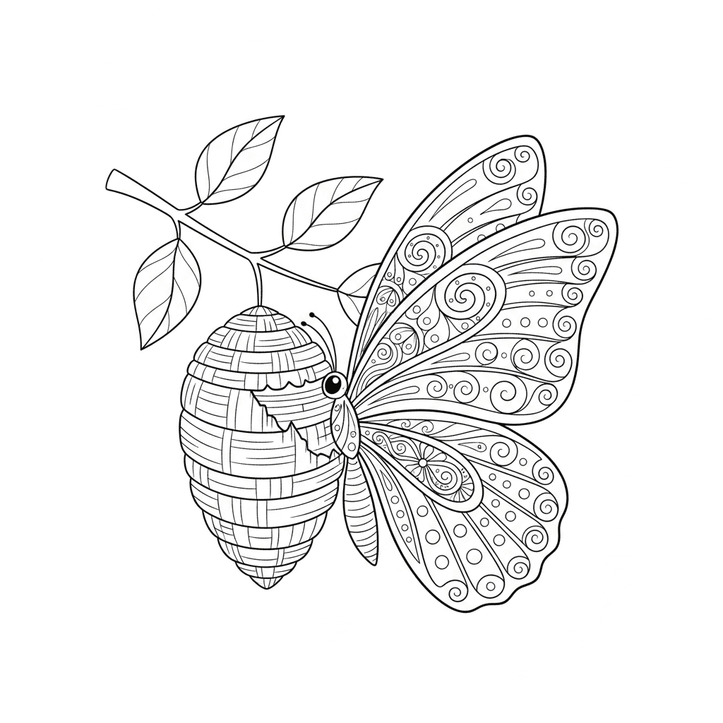 Dibujo de mariposa saliendo del capullo para colorear. Gratis para descargar e imprimir.
