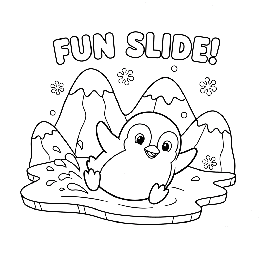 Une délicieuse page de coloriage d'oiseaux représentant un pingouin glissant sur de la glace ludique. Parfait pour les enfants et les adultes qui aiment colorier !