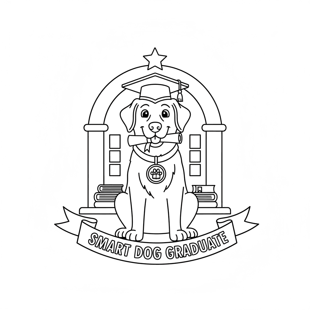 Une adorable page de coloriage représentant un chien en toque de remise de diplôme, intelligent et bien dressé. Parfaite pour les enfants et les adultes qui aiment colorier !