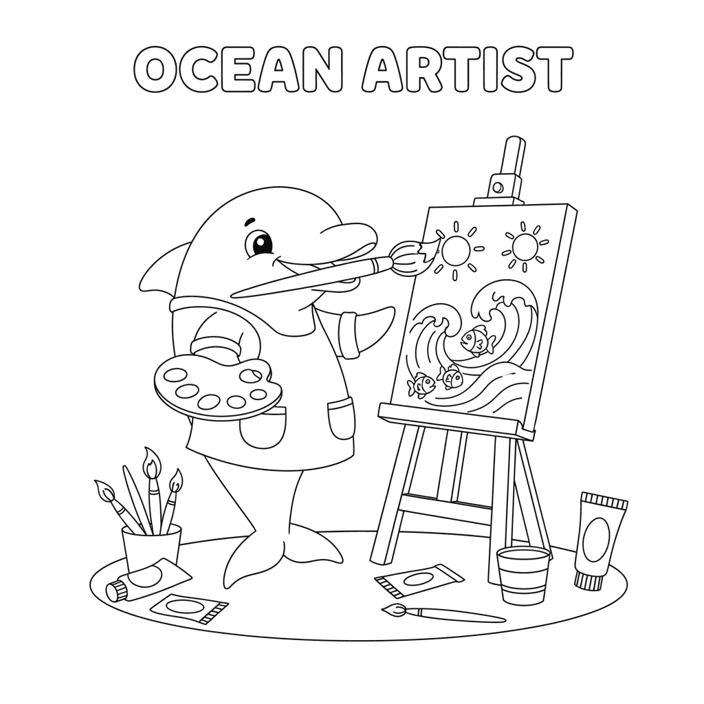 Une charmante page de coloriage sur les dauphins où l'artiste peint une scène de l'océan. Parfait pour les enfants et les adultes qui aiment colorier !