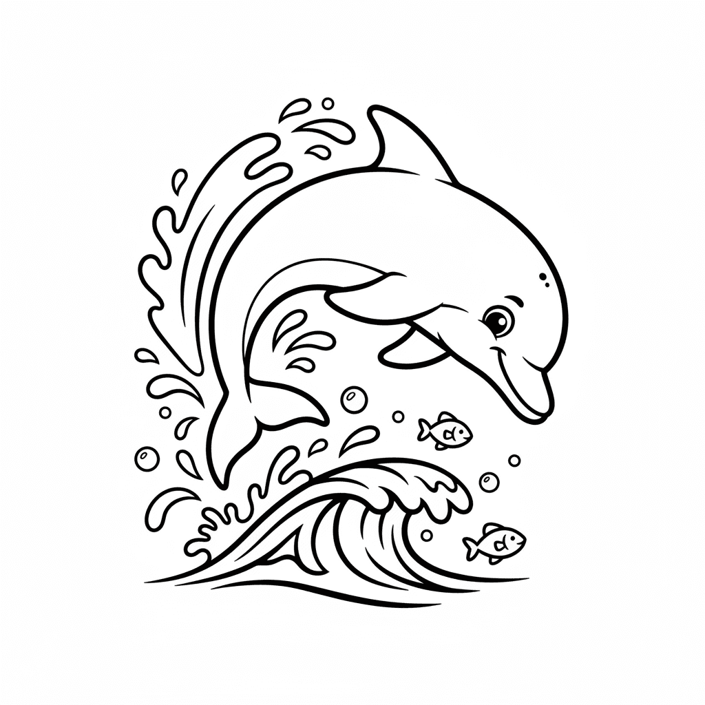 Une délicieuse page de coloriage sur les dauphins, où l'on voit un dauphin faire un saut périlleux arrière acrobatique. Parfait pour les enfants et les adultes qui aiment colorier !