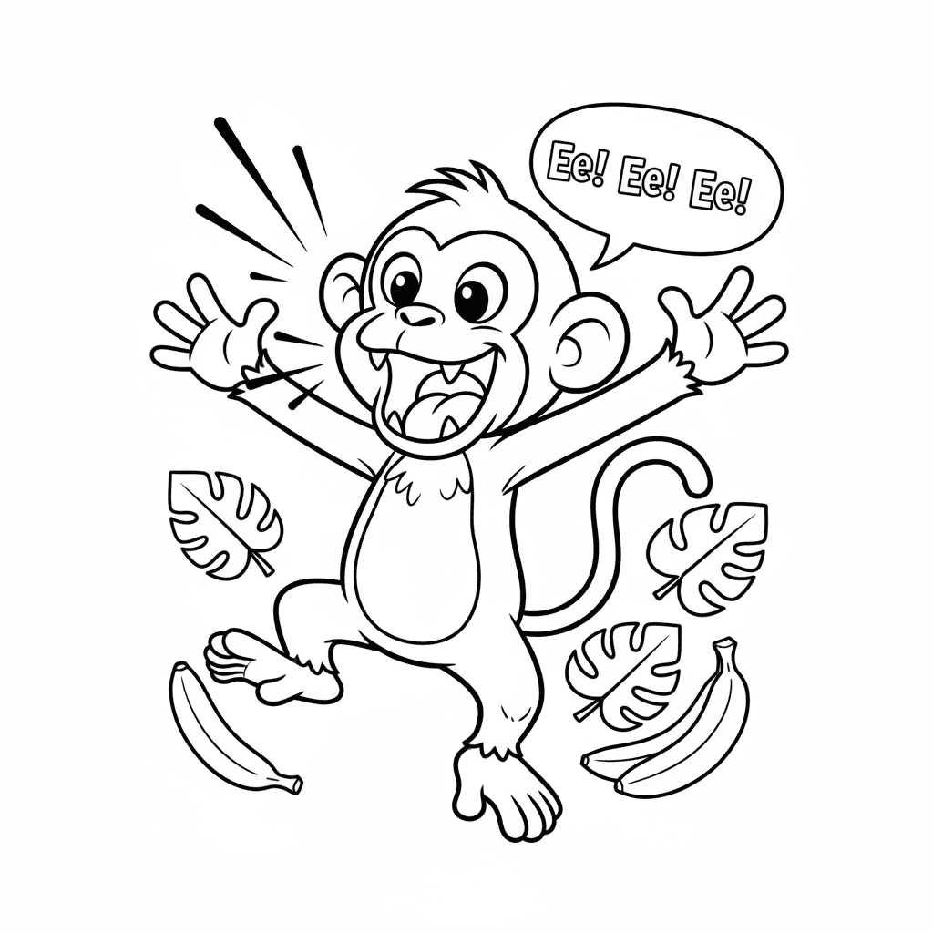 Une charmante page de coloriage de singes qui s'expriment bruyamment en bavardant. Parfait pour les enfants et les adultes qui aiment colorier !