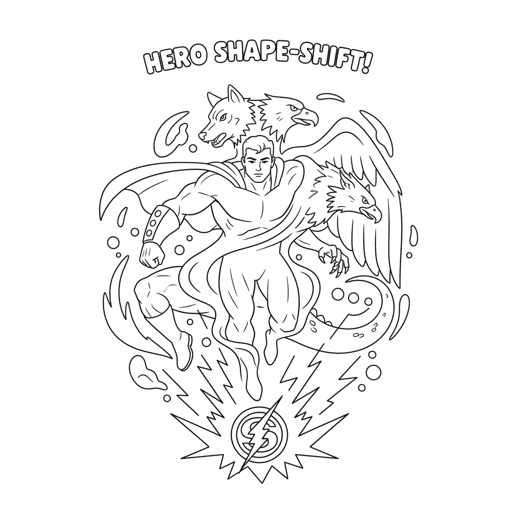 Une adorable page de coloriage de super-héros mettant en scène des super-héros capables de se métamorphoser. Idéale pour les enfants et les adultes qui aiment colorier !