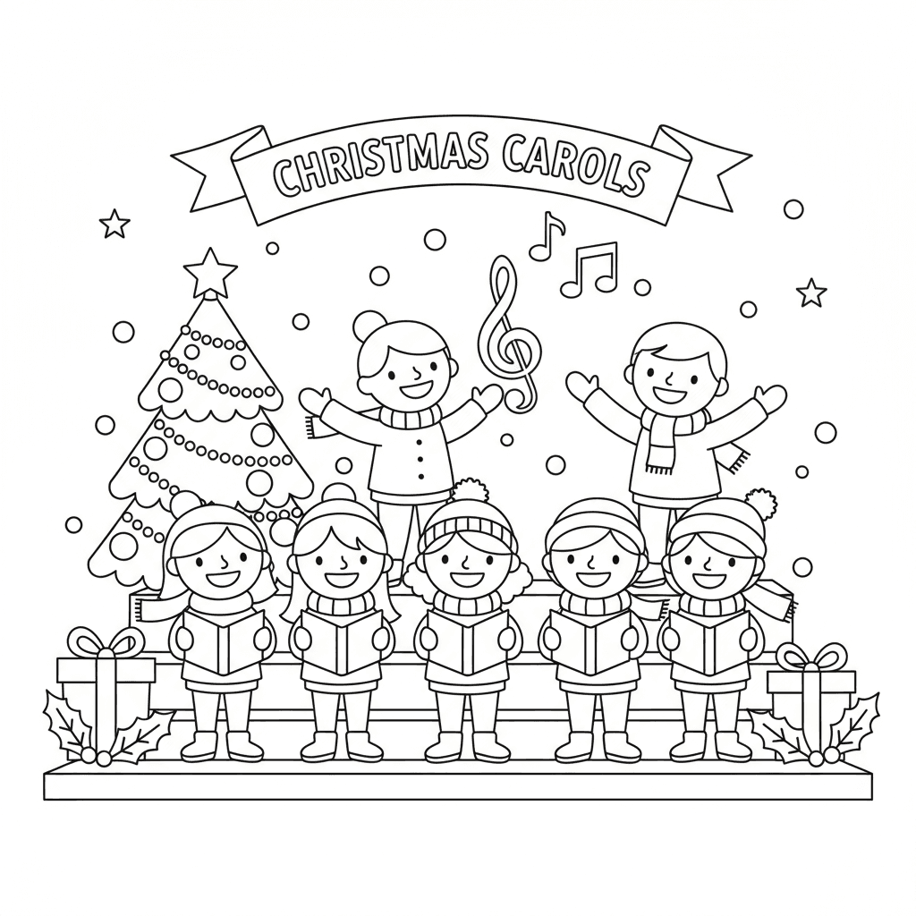 Una deliziosa pagina di Natale da colorare con un coro di musica natalizia. Perfetto per bambini e adulti che amano colorare!