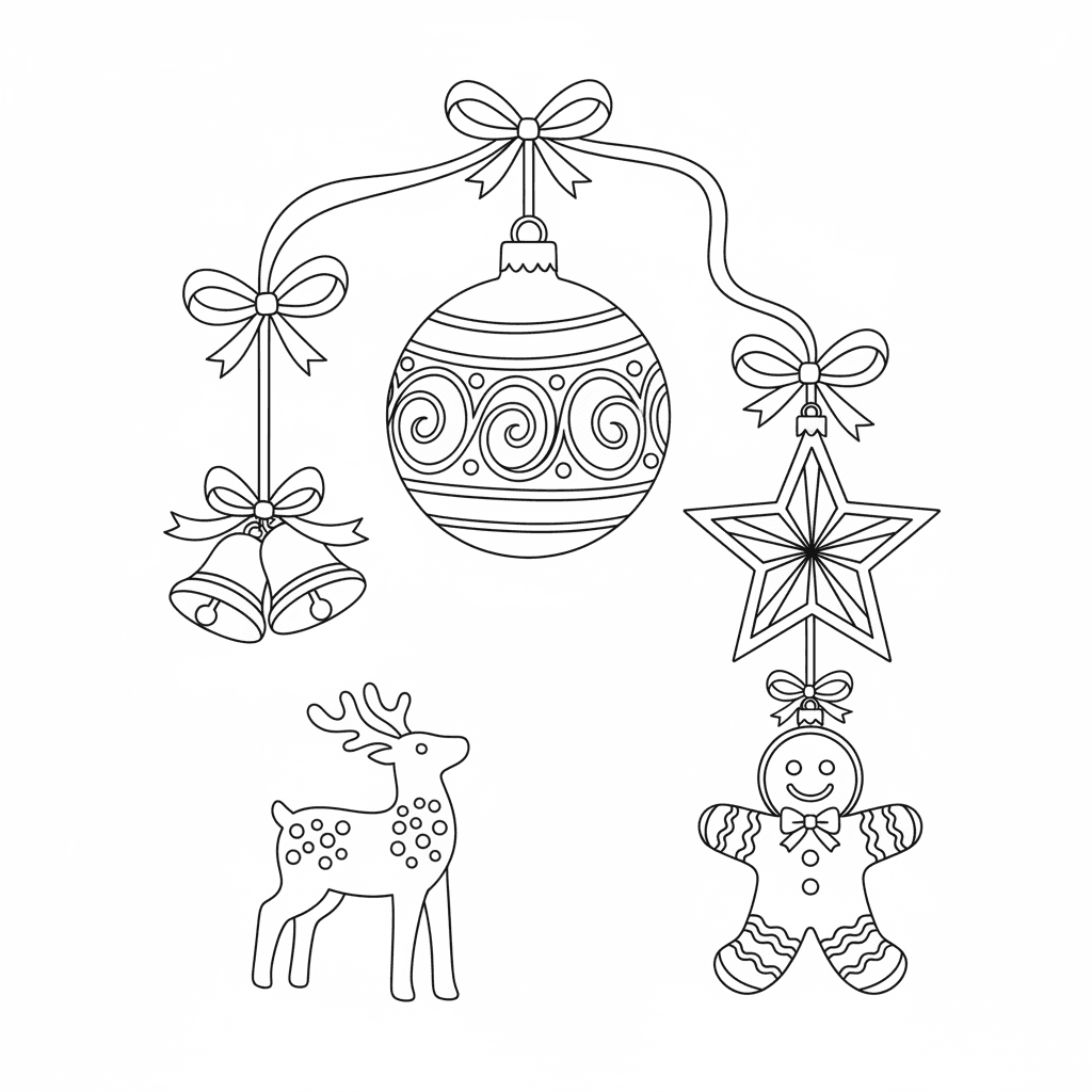 Bella collezione di ornamenti natalizi da colorare per bambini e adulti. Da scaricare e stampare gratuitamente.