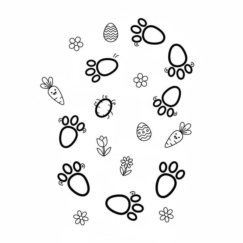 Una deliziosa pagina di Pasqua da colorare con le impronte del coniglietto pasquale. Perfetto per bambini e adulti che amano colorare!