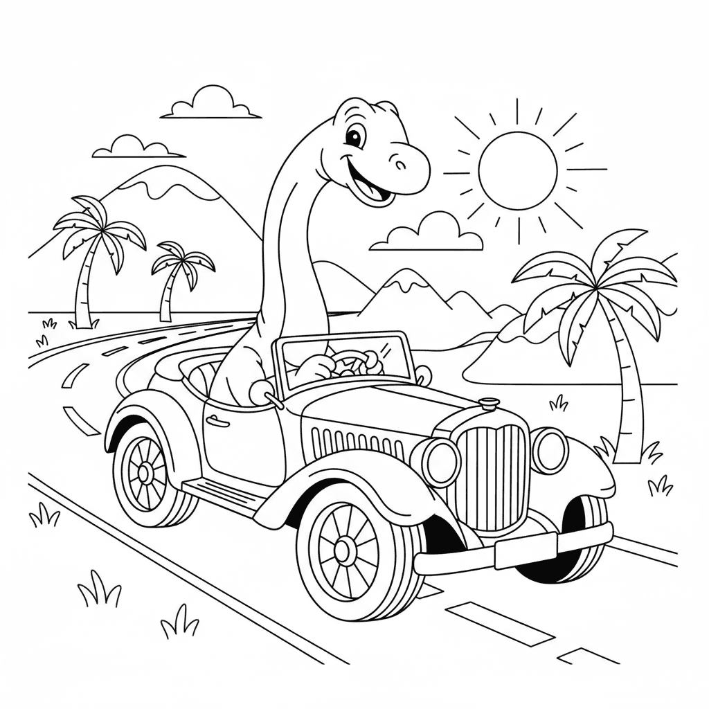 Brontosaurus rijdt auto