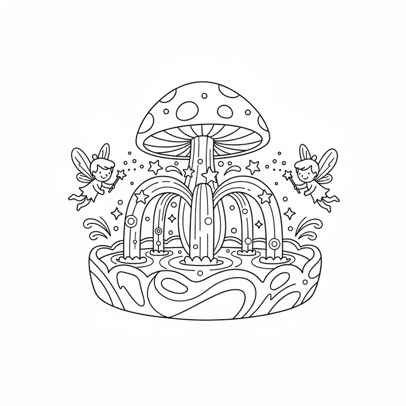 Een prachtige feeënkleurplaat met feeënfontein met magisch water dat sprankelt. Perfect voor kinderen en volwassenen die van kleuren houden!