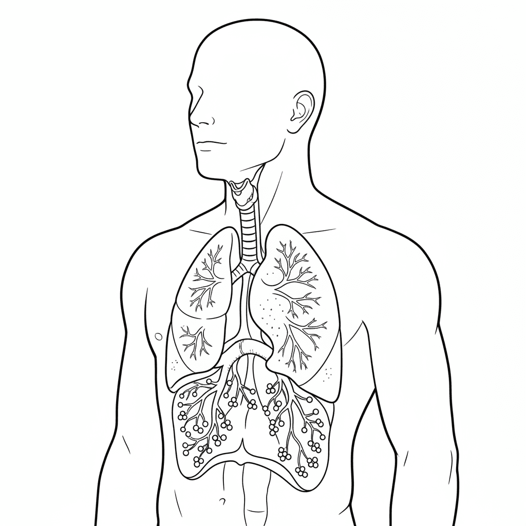 Omtrek van het menselijk lichaam met ademhalingssysteem