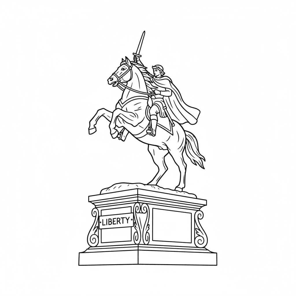 Een prachtige paardenkleurplaat met paardenbeeld monument brons metaal. Perfect voor kinderen en volwassenen die van kleuren houden!