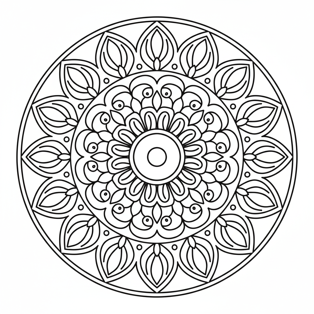 Een prachtige mandala kleurplaat met zen mandala eenvoudige schone meditatie gericht. Perfect voor kinderen en volwassenen die van kleuren houden!