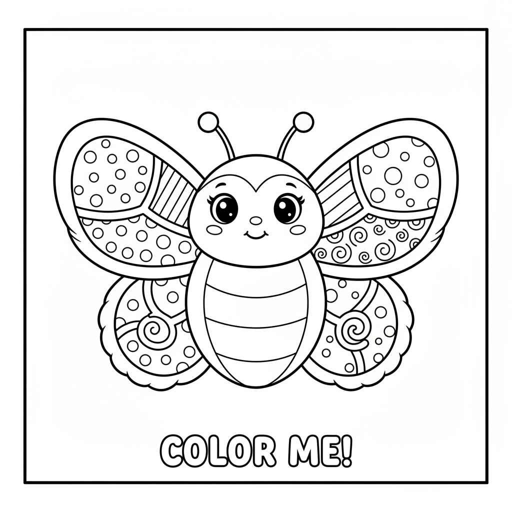 Een originele AI-gegenereerde fan art kleurplaat geïnspireerd door squishmallow, met een schattig pluchen vlinderfiguurtje met ronde kleurrijke vleugels. Dit is onofficiële fan art, niet verbonden met de originele makers. Perfect voor kinderen en volwassenen die van kleuren houden!