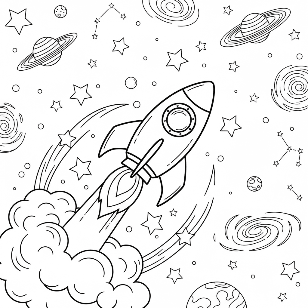 Mooie ster raket schip ruimte kleurplaat voor kinderen en volwassenen. Gratis downloaden en afdrukken.