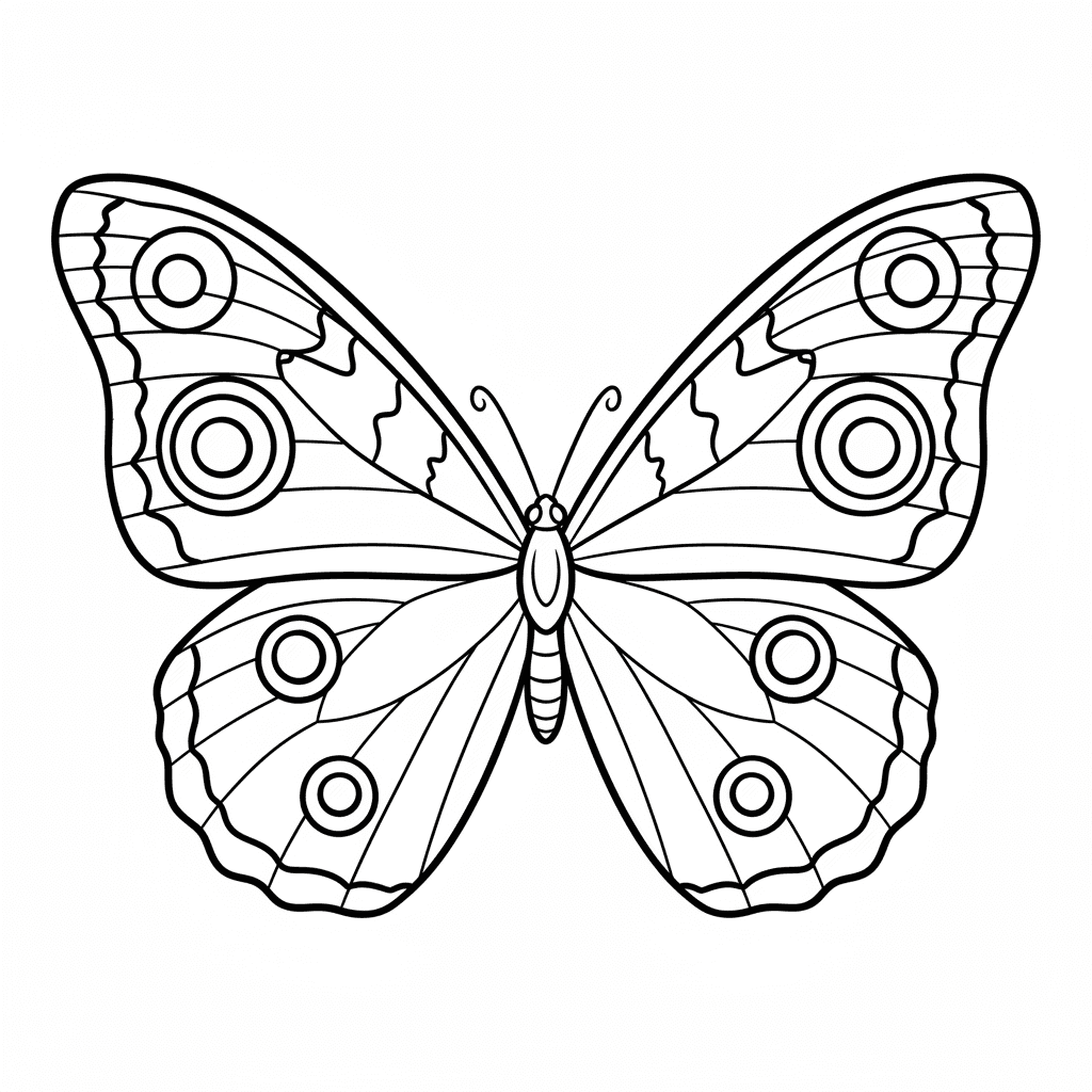 En härlig fjärilsmålningssida med buckeye fjärilens ögonmönster vingar. Perfekt för barn och vuxna som älskar att färglägga!