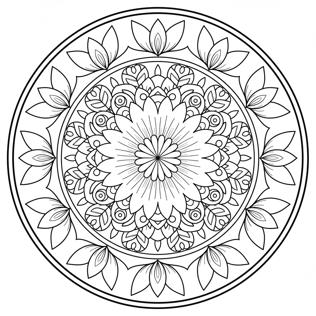 En härlig blomma färgläggningssida med blomma mandala mönster konstnärlig design. Perfekt för barn och vuxna som älskar att färglägga!