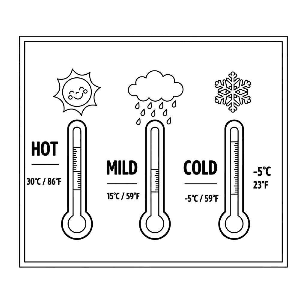 En härlig mattemålarbild med en temperaturtermometer som visar olika temperaturer och väder. Perfekt för barn och vuxna som älskar att måla!