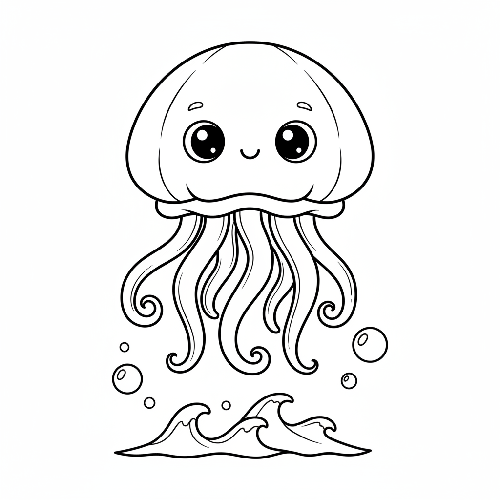 En original AI-genererad fan art-målarbok inspirerad av squishmallow, med en söt squishy plyschmanetkaraktär med flytande tentakler i havet. Detta är inofficiell fan art, inte ansluten till de ursprungliga skaparna. Perfekt för barn och vuxna som älskar att färglägga!