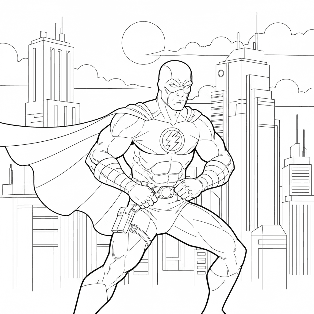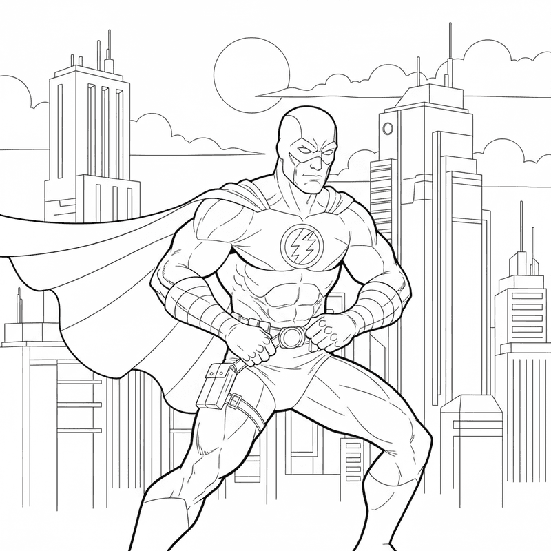 Vacker superhjälte som gör sig redo målarbok för barn och vuxna. Gratis att ladda ner och skriva ut.
