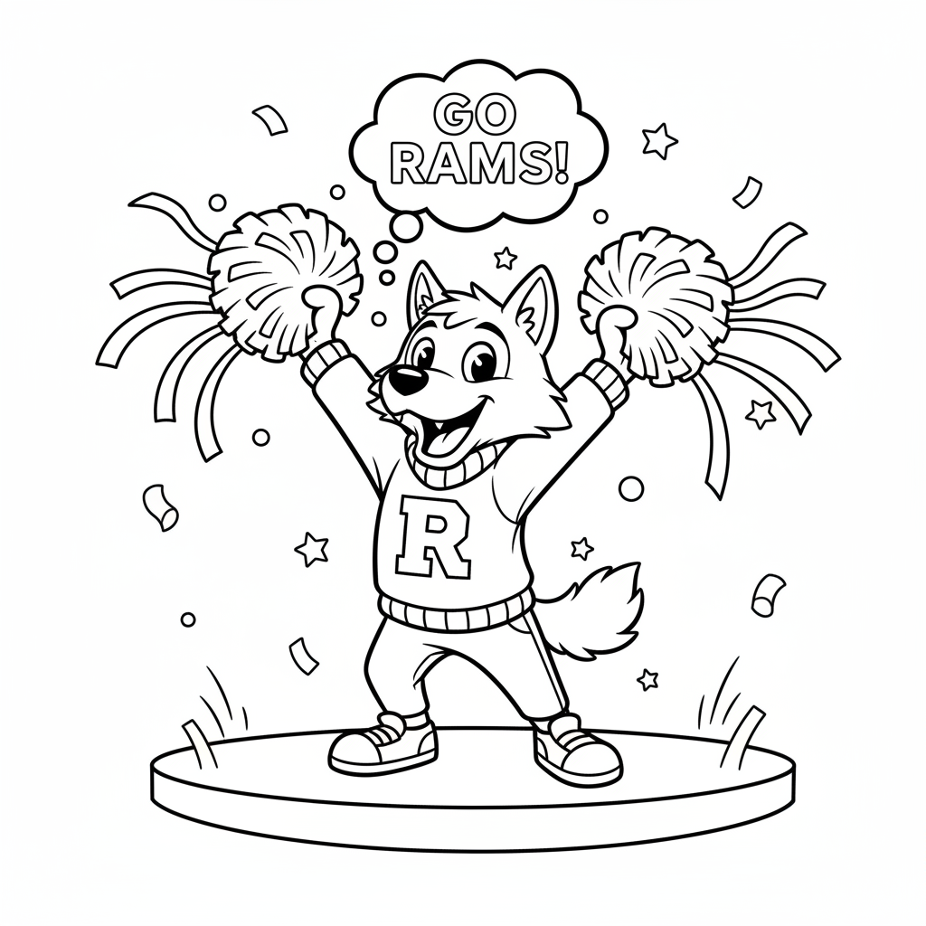 A delightful back to school coloring page featuring school mascot character cheering with pom poms spirit rally. Perfect for kids and adults who love coloring!