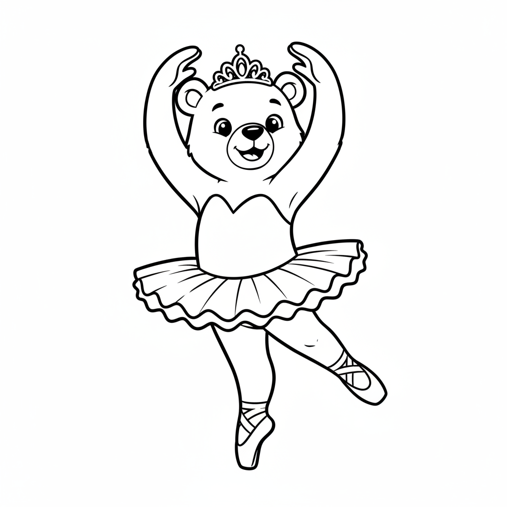 A delightful bear coloring page featuring bear ballet dancer performing elegant pirouette. Perfect for kids and adults who love coloring!