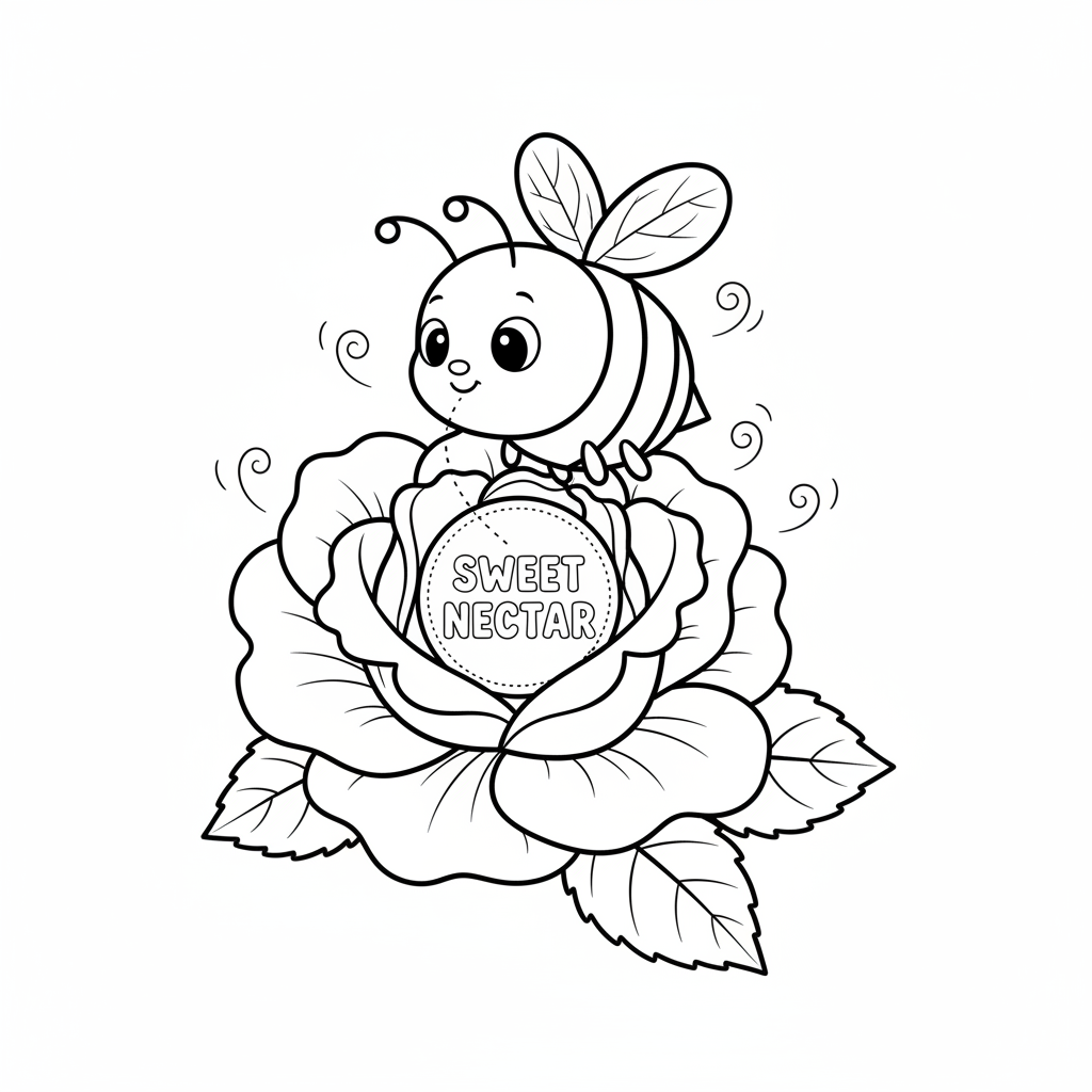 A delightful bee coloring page featuring bee on rose flower sweet nectar. Perfect for kids and adults who love coloring!