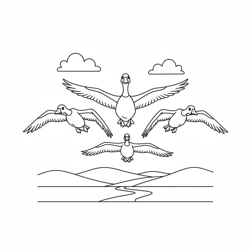 A delightful bird coloring page featuring goose flying in V formation migration. Perfect for kids and adults who love coloring!