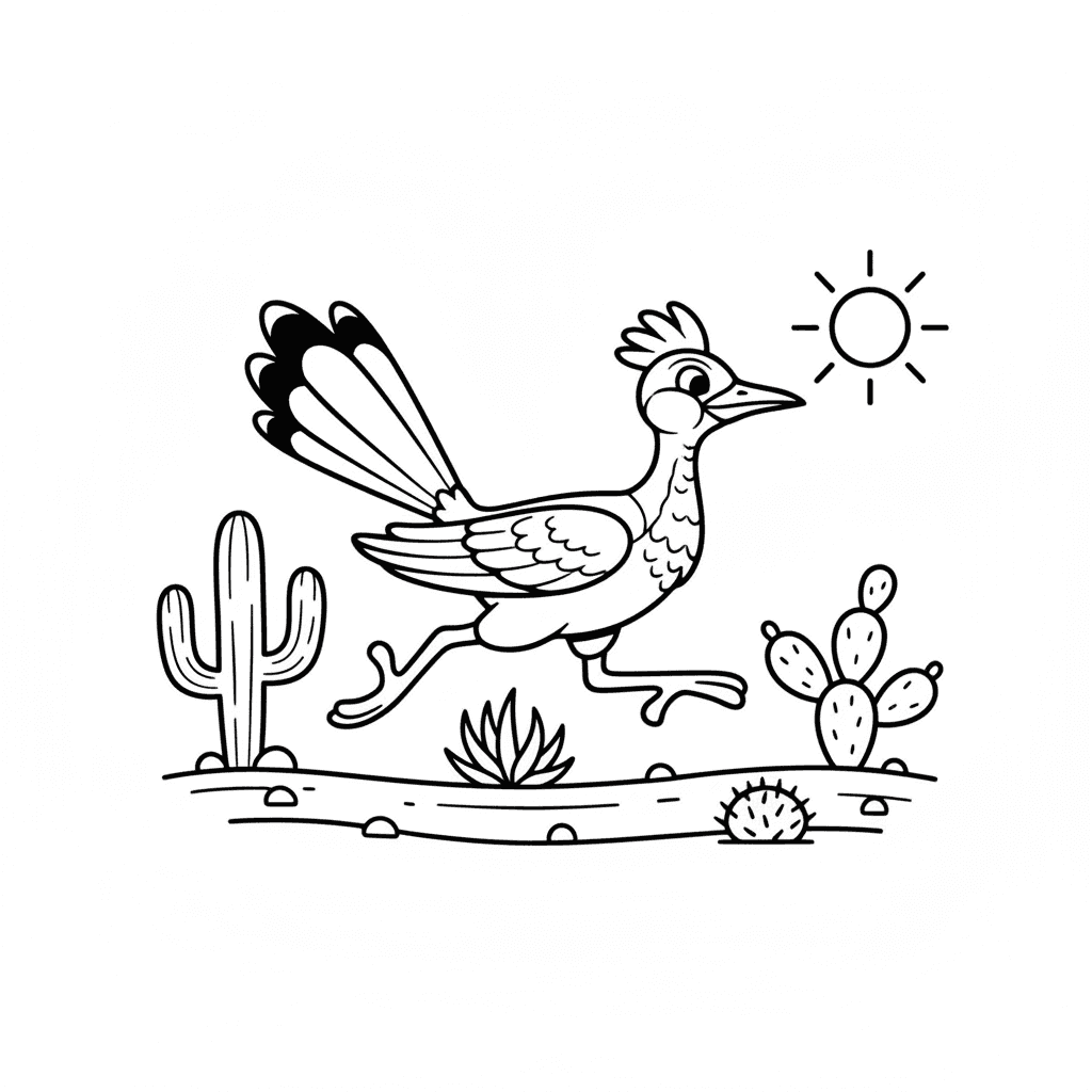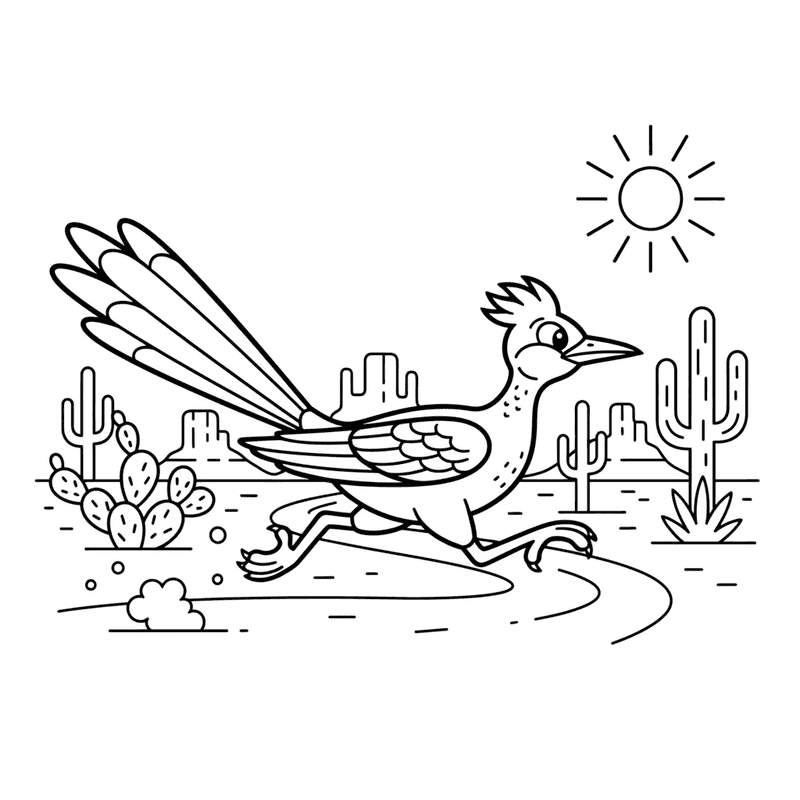 A delightful bird coloring page featuring roadrunner desert southwestern running. Perfect for kids and adults who love coloring!