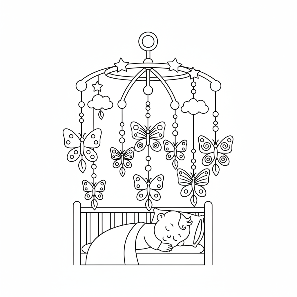 A delightful butterfly coloring page featuring butterfly mobile nursery decoration baby. Perfect for kids and adults who love coloring!
