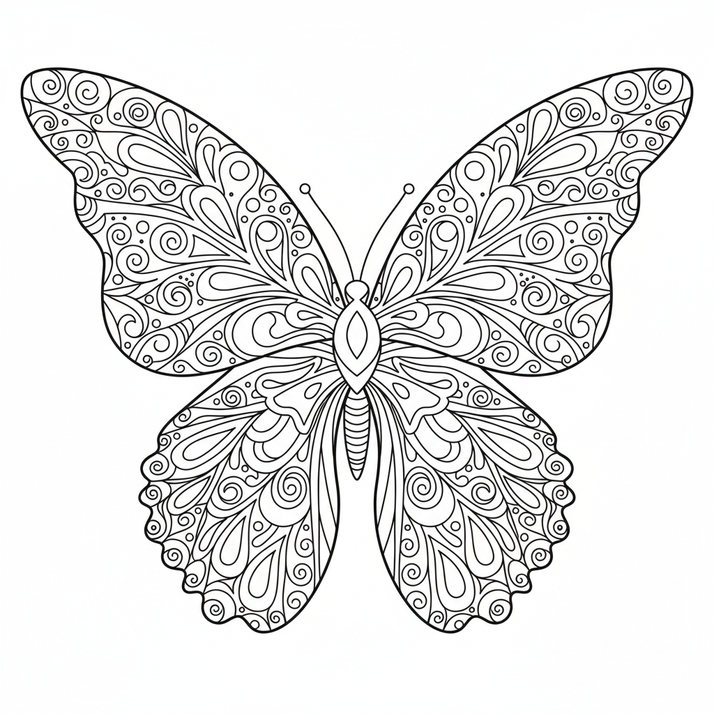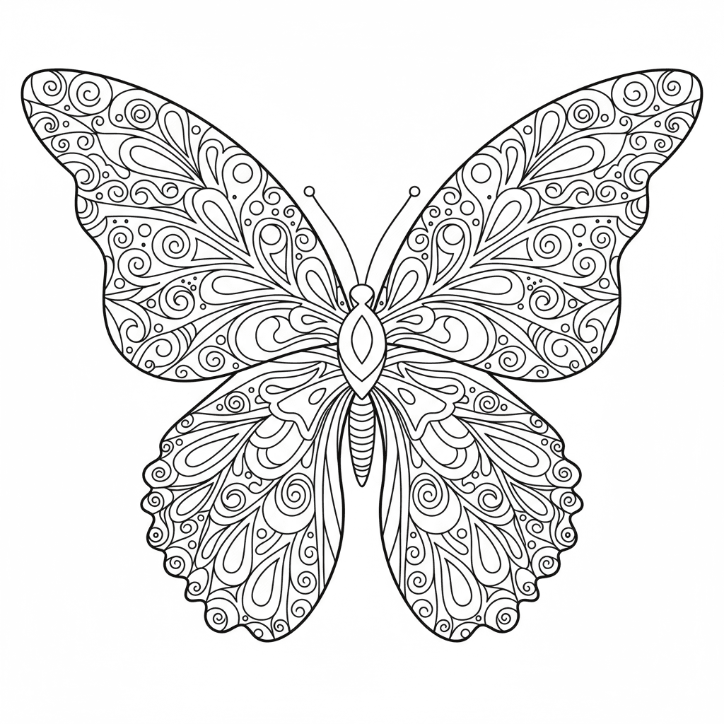 Beautiful butterfly wings close up pattern coloring page for kids and adults. Free to download and print.