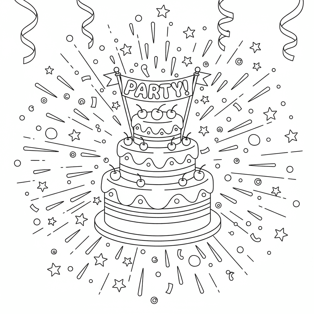 A delightful cake coloring page featuring celebration cake confetti sprinkles party. Perfect for kids and adults who love coloring!