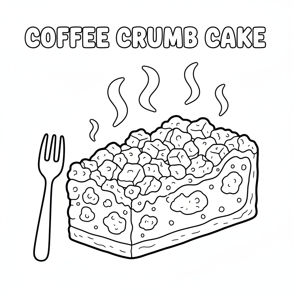 A delightful cake coloring page featuring coffee cake crumb topping breakfast treat. Perfect for kids and adults who love coloring!