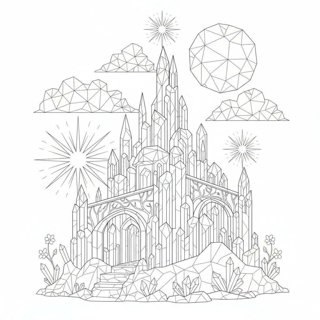 Beautiful crystal castle sparkling coloring page for kids and adults. Free to download and print.