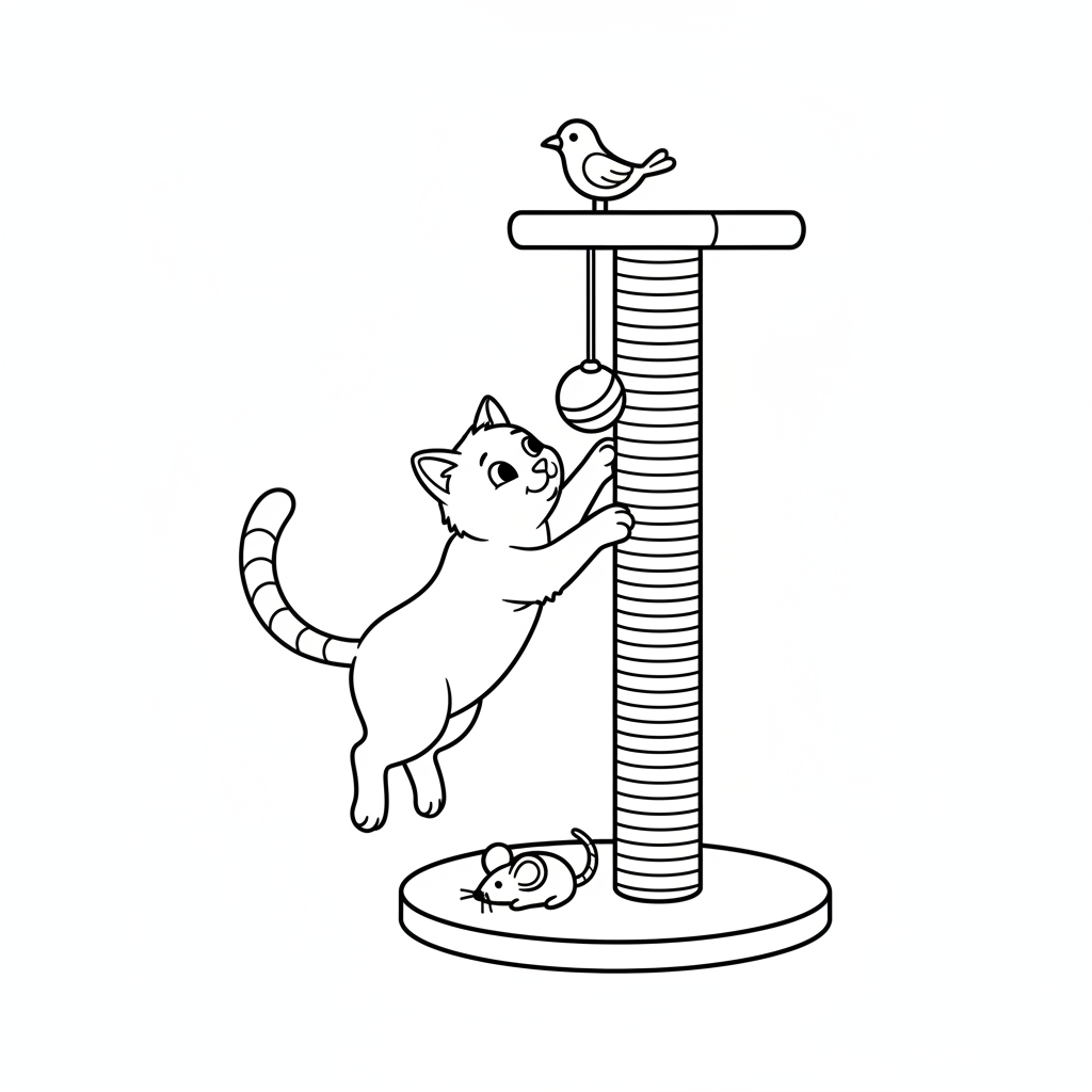 A delightful cat coloring page featuring cat on scratching post climbing playing. Perfect for kids and adults who love coloring!