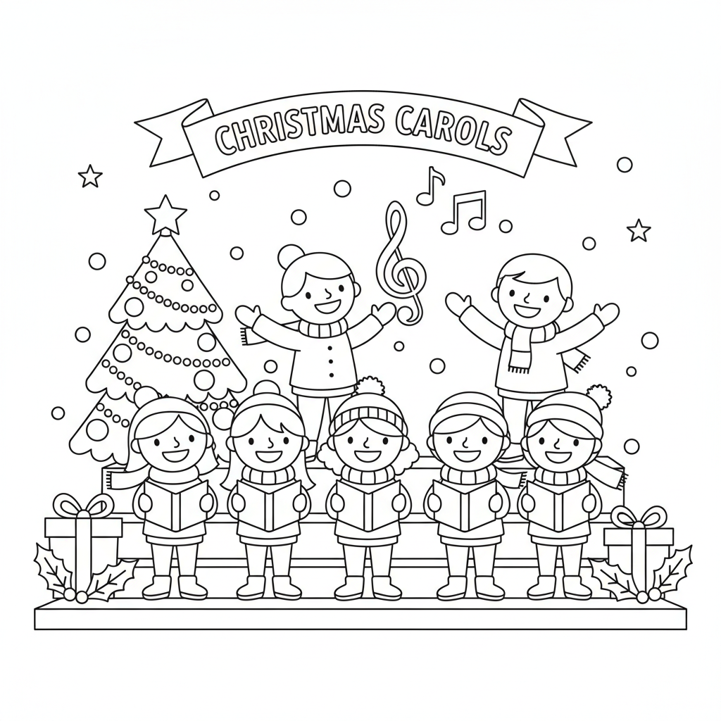 A delightful christmas coloring page featuring christmas music performance choir. Perfect for kids and adults who love coloring!