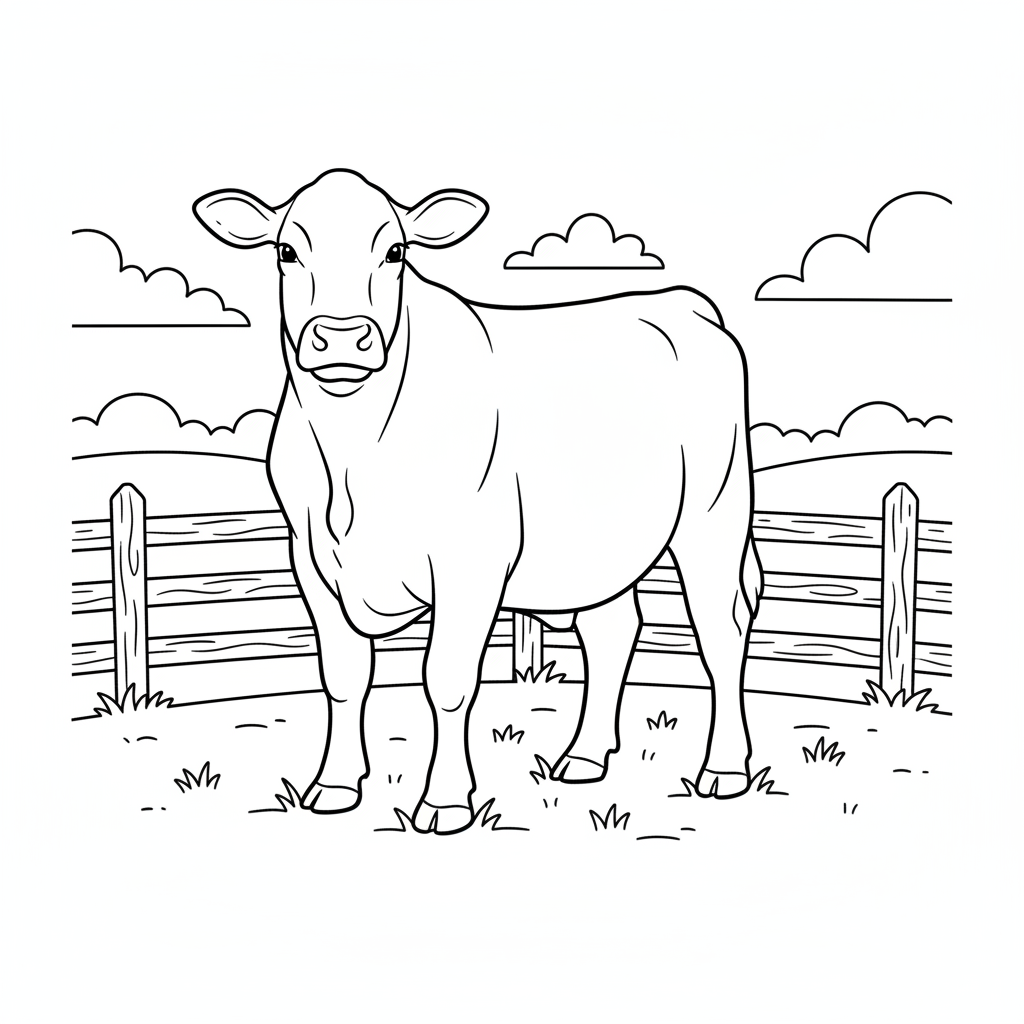A delightful cow coloring page featuring black Angus cow standing proudly pasture beef. Perfect for kids and adults who love coloring!