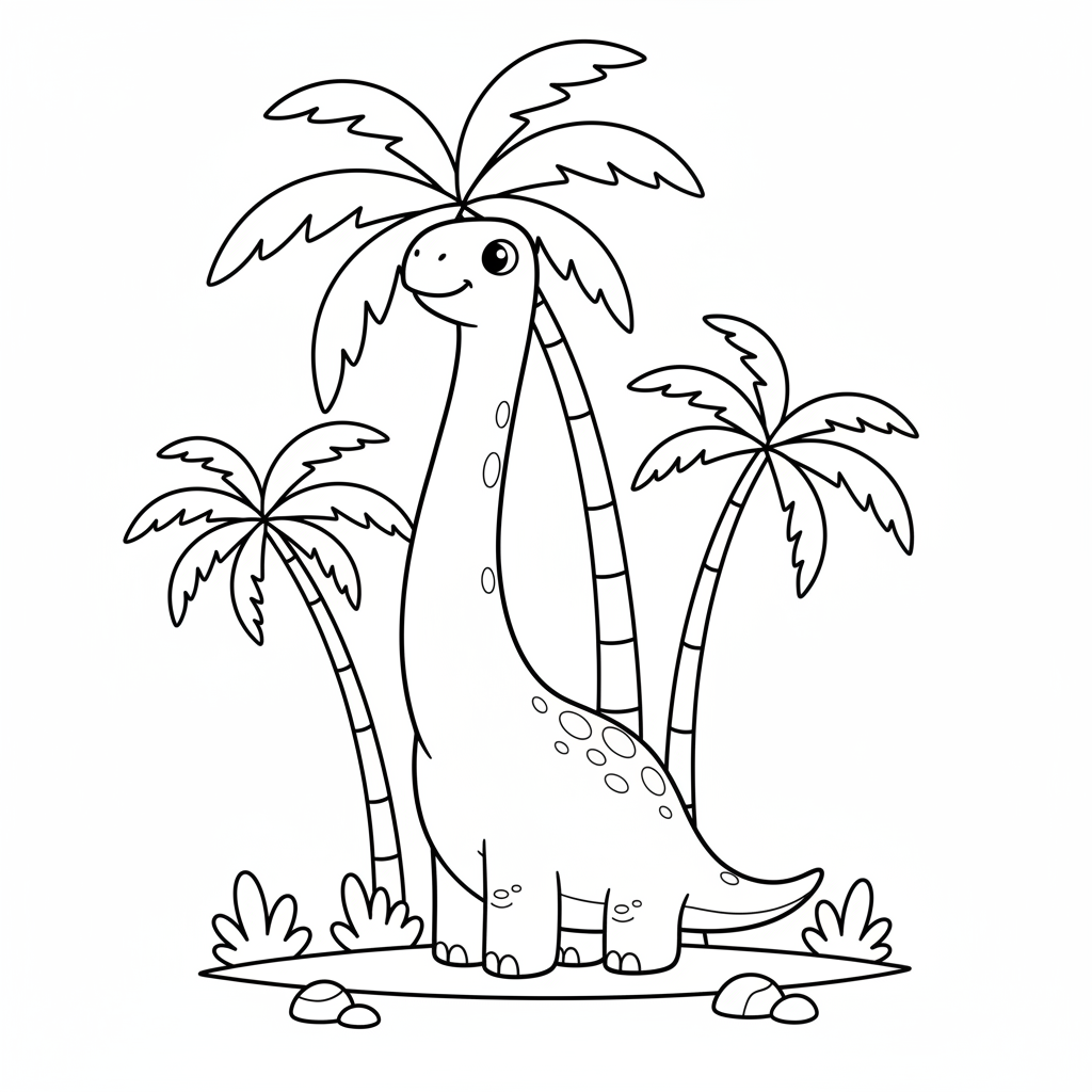 A delightful dinosaur coloring page featuring apatosaurus long neck reaching high trees. Perfect for kids and adults who love coloring!