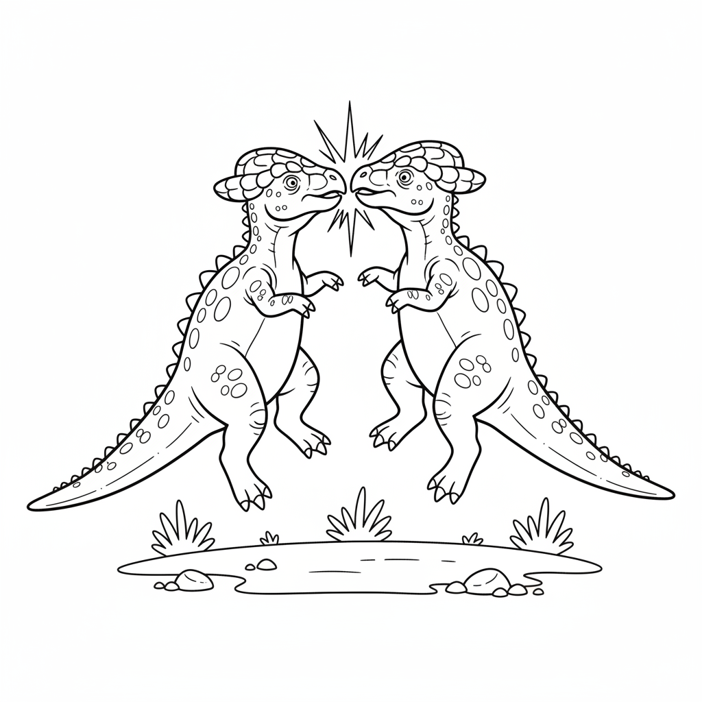A delightful dinosaur coloring page featuring pachycephalosaurus dome head butting. Perfect for kids and adults who love coloring!