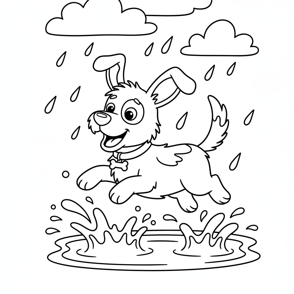 A delightful dog coloring page featuring dog in rain puddle splashing fun. Perfect for kids and adults who love coloring!