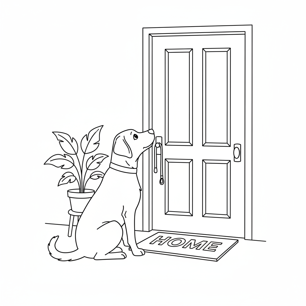 A delightful dog coloring page featuring dog waiting by door for owner loyal. Perfect for kids and adults who love coloring!