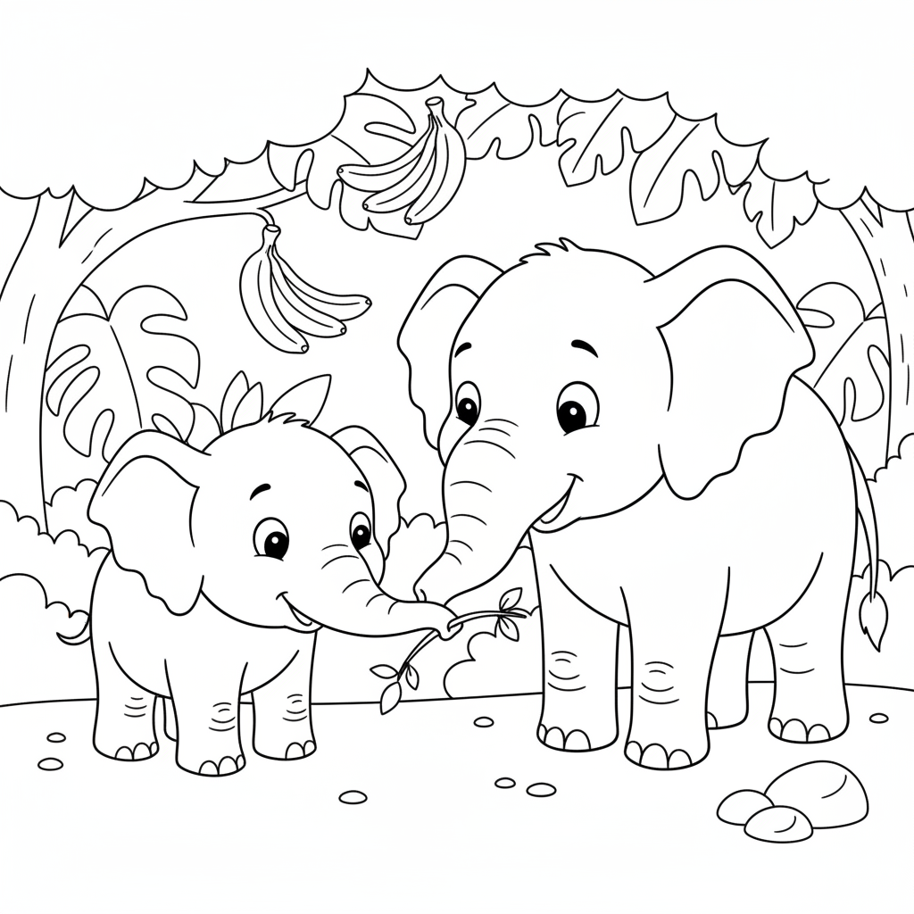 A delightful elephant coloring page featuring baby elephant learning to use trunk. Perfect for kids and adults who love coloring!