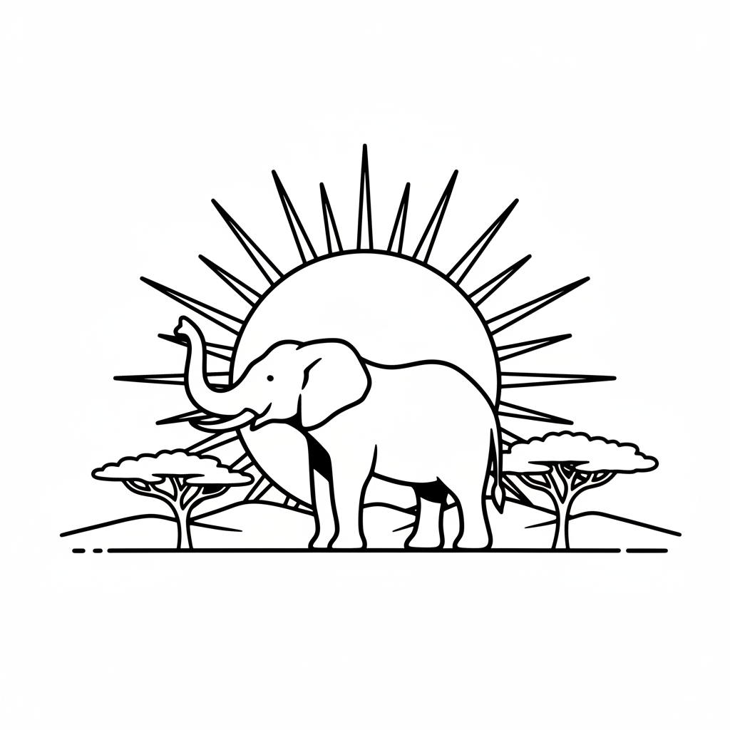 A delightful elephant coloring page featuring elephant at sunset silhouette africa. Perfect for kids and adults who love coloring!