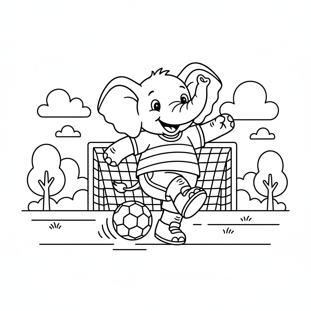 A delightful elephant coloring page featuring elephant playing soccer sports fun kick. Perfect for kids and adults who love coloring!