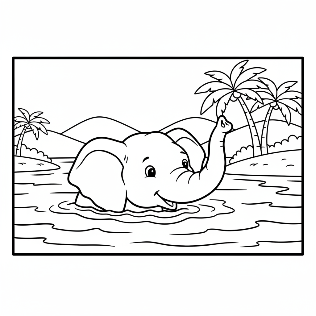 A delightful elephant coloring page featuring elephant swimming in river crossing deep. Perfect for kids and adults who love coloring!