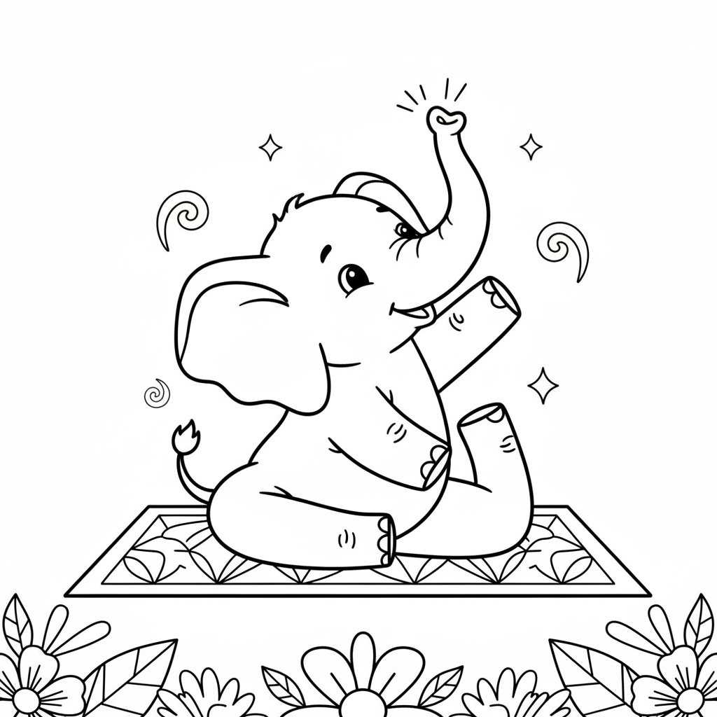 A delightful elephant coloring page featuring elephant yoga stretching peaceful pose. Perfect for kids and adults who love coloring!